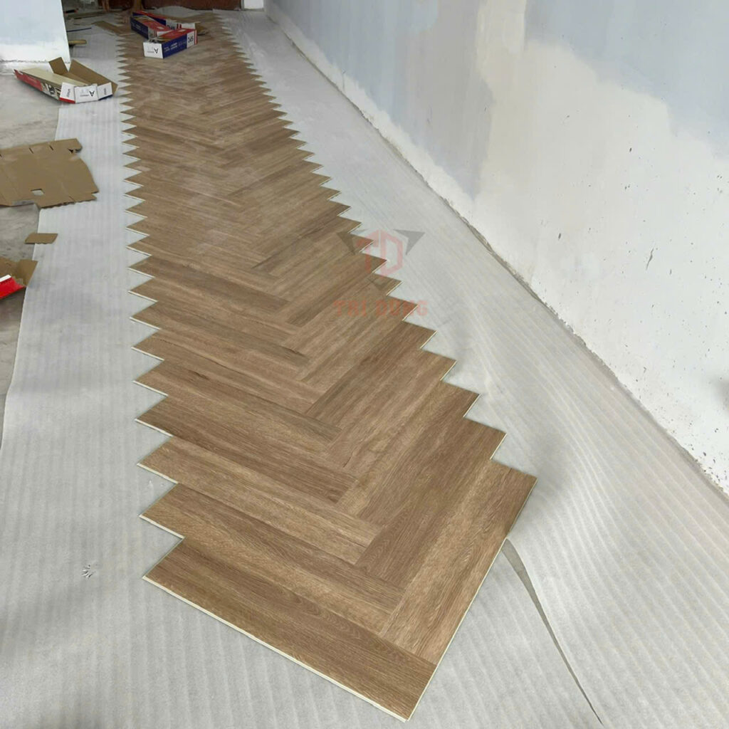 Thi công ốp sàn nhựa xương cá