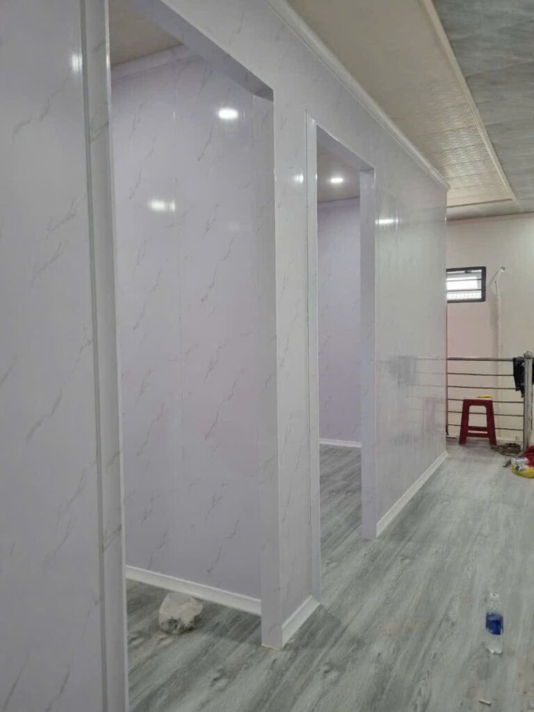 Lam sóng nhựa hoặc PVC ốp tường: phối cùng giúp tổng thể sang trọng, hiện đại.