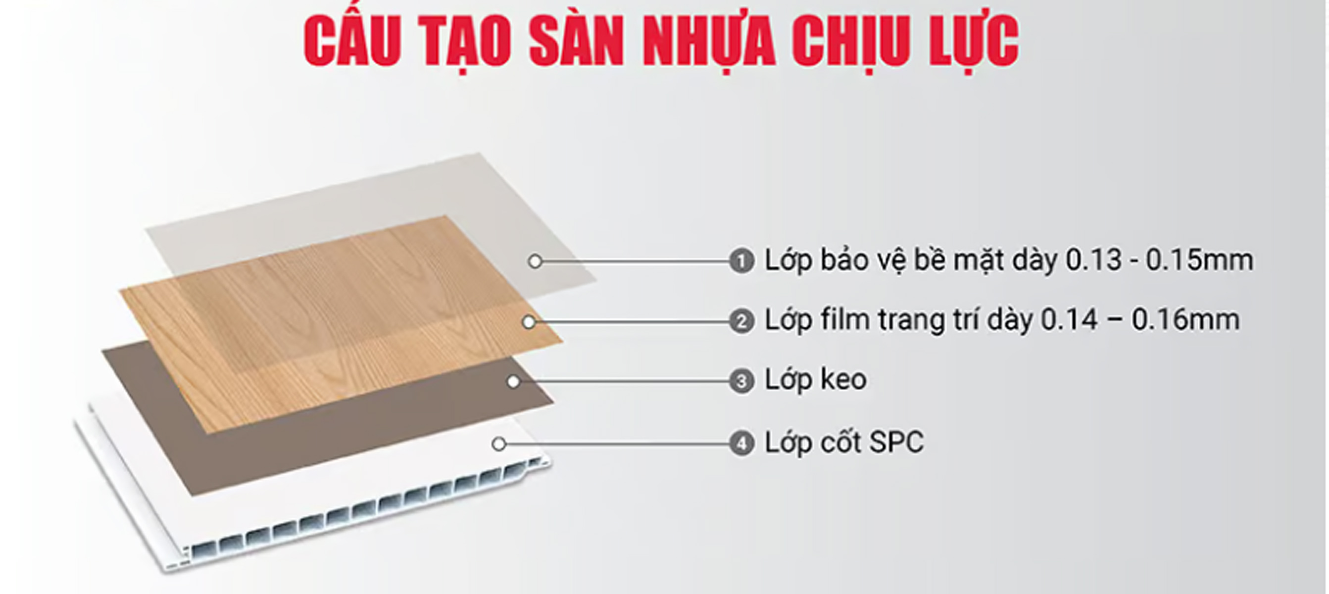 Sàn nhựa lót gác lửng là vật liệu lót sàn có khả năng chịu lực cực tốt. Tùy theo chất lượng ván và nhà sản xuất mà sàn có thể chịu được tải trọng lên đến đến 500kg/m². Mật độ của sàn dao động từ 1.4 – 1.6g/cm³. Ta tha hồ chạy nhảy lên mặt sàn mà không lo hư hỏng.