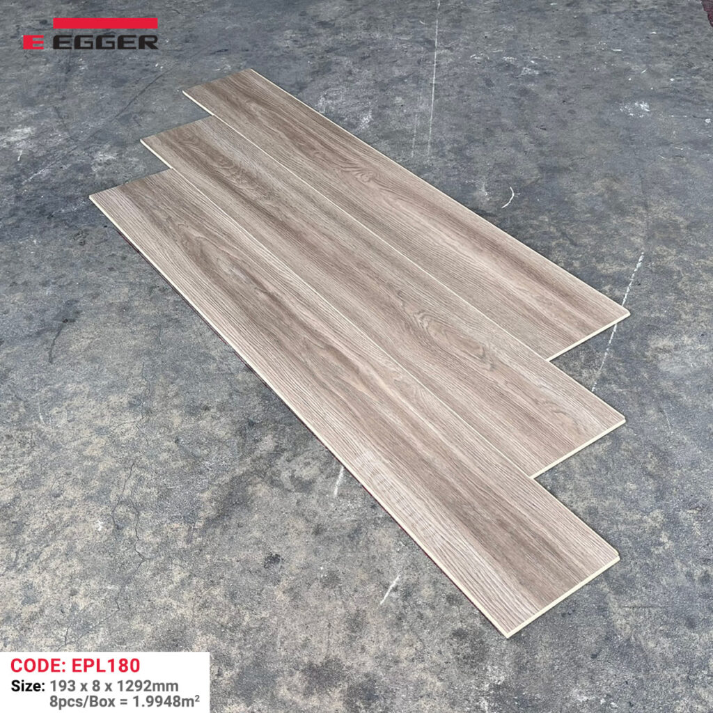 Sàn gỗ Egger Đức AQUA 8mm EPL180 là dòng sàn gỗ công nghiệp cao cấp, sản xuất theo tiêu chuẩn châu Âu, nổi bật với thiết kế vân gỗ tự nhiên, độ bền cao và khả năng chịu ẩm vượt trội. Sản phẩm là lựa chọn lý tưởng cho các không gian nội thất từ nhà ở đến văn phòng sang trọng.