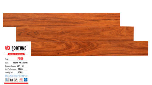 Sàn gỗ Fortune Aqua F967 12mm là dòng sàn công nghiệp cao cấp nổi bật với khả năng chịu nước trong thời gian dài (78 giờ) mà không bị biến dạng.
