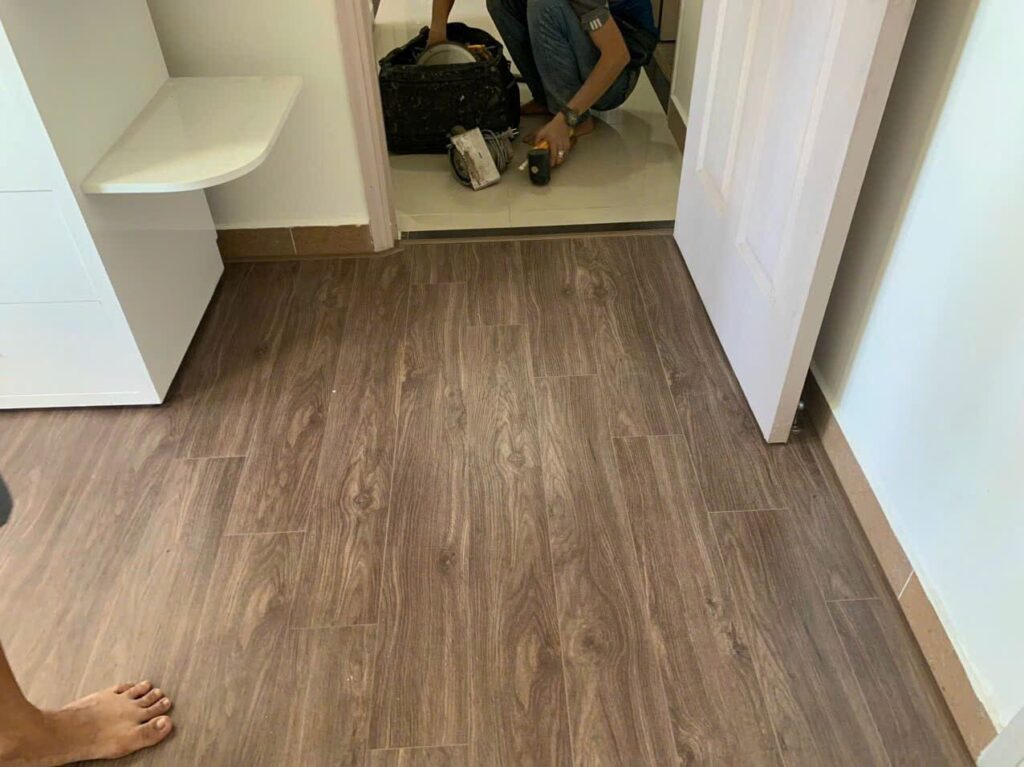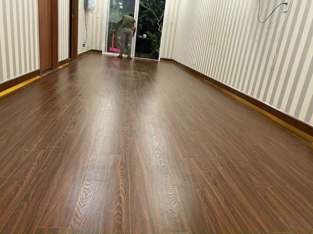 Bề mặt sàn được phủ lớp bảo vệ để giúp giảm trầy xước dù sử dụng lâu dài.