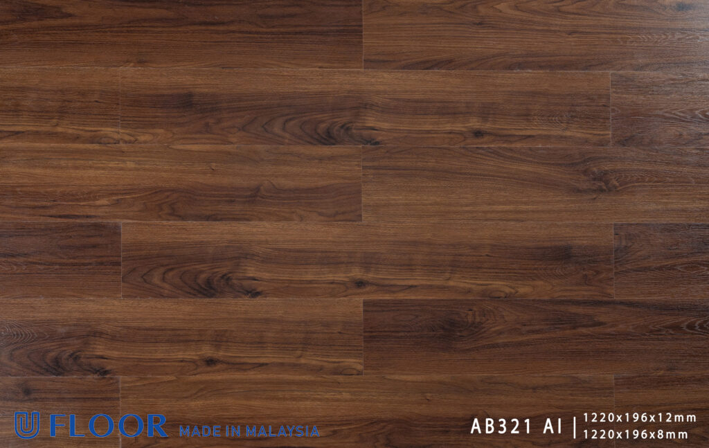 Sàn gỗ UFloor AB-321 AI là dòng sàn gỗ công nghiệp cao cấp nhập khẩu từ Malaysia, nổi bật với hai lựa chọn độ dày 8 mm và 12 mm, phù hợp nhiều nhu cầu sử dụng khác nhau.