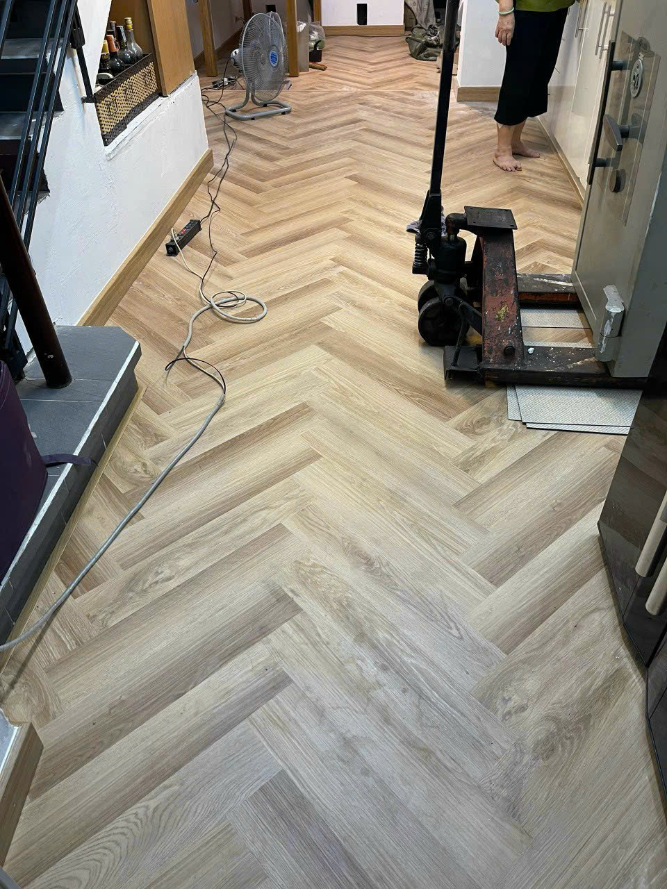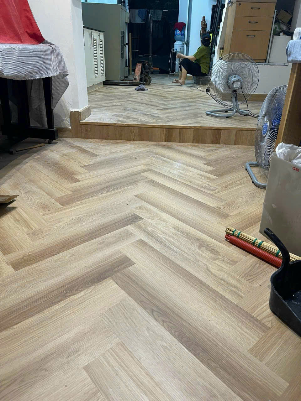 Kiểu lát xương cá tinh tế mang lại cảm giác sang trọng, tạo điểm nhấn cho không gian nội thất.