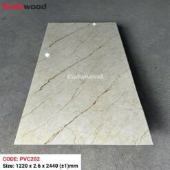 Hiệu ứng vân đá thật ấn tượng: Nhờ công nghệ in hiện đại, vân đá trên tấm PVC214 có chiều sâu và độ bóng tự nhiên như đá thật.