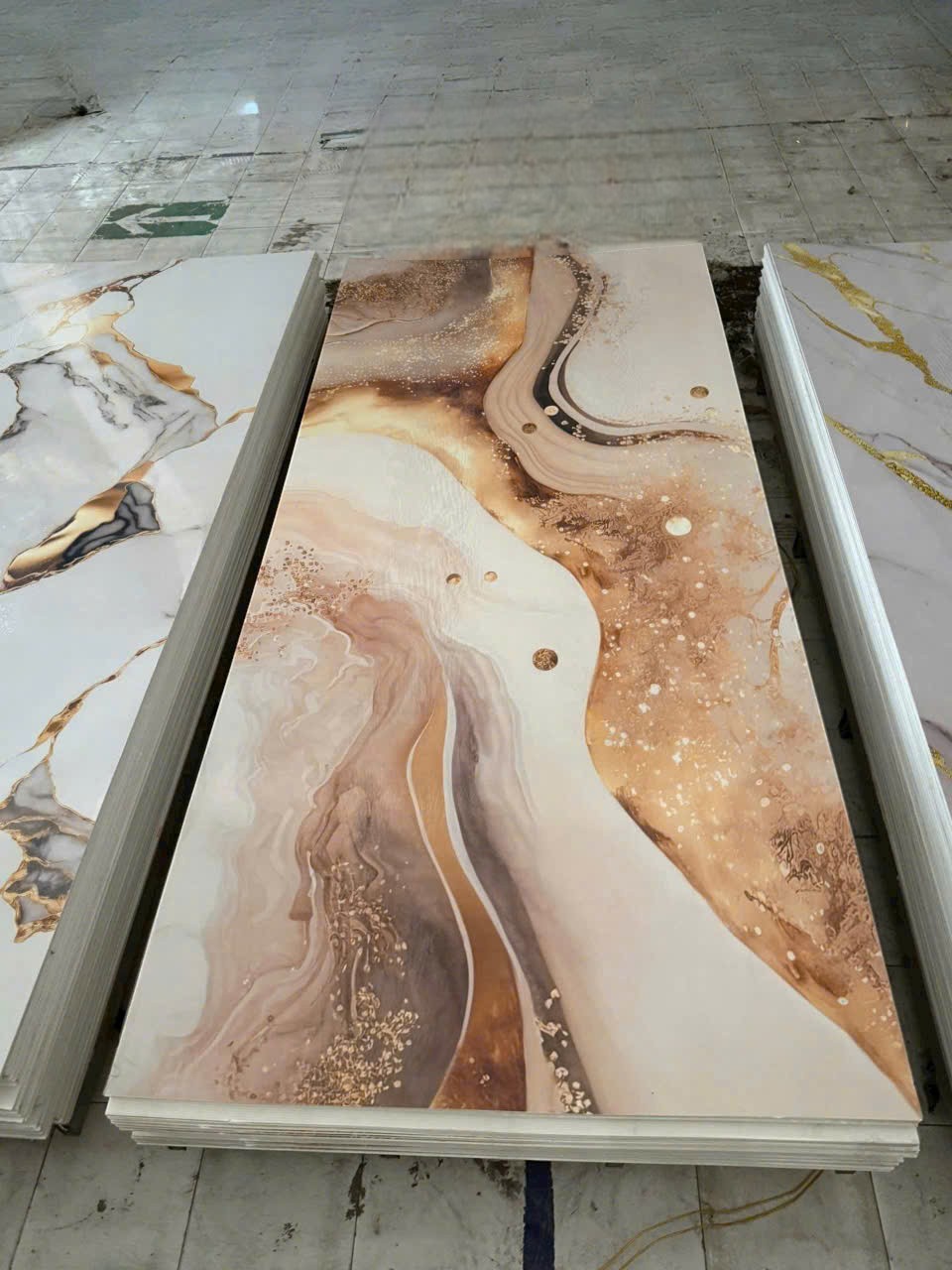 Tấm nhựa PVC vân đá : Được cấu tạo từ nhựa nguyên sinh kết hợp với bột đá mịn qua gia công nhiệt cho ra sản phẩm hoàn chỉnh. Nên chúng rất chắc chắn và sở hữu nhiều ưu điểm nổi bật. Nhất là về bẻ đẹp bên ngoài, bởi tấm PVC ốp tường có rất nhiều hoa văn và nhiều mẫu khác nhau. Từ tấm PVC vân đá Marble, đá Granite, đá Kim Sa, tấm trắng trơn, cho đến giả gỗ nhạt, giả gỗ đậm giúp bạn dễ dàng lựa chọn kiểu dáng phù hợp với phong cách nội thất ngôi nhà.