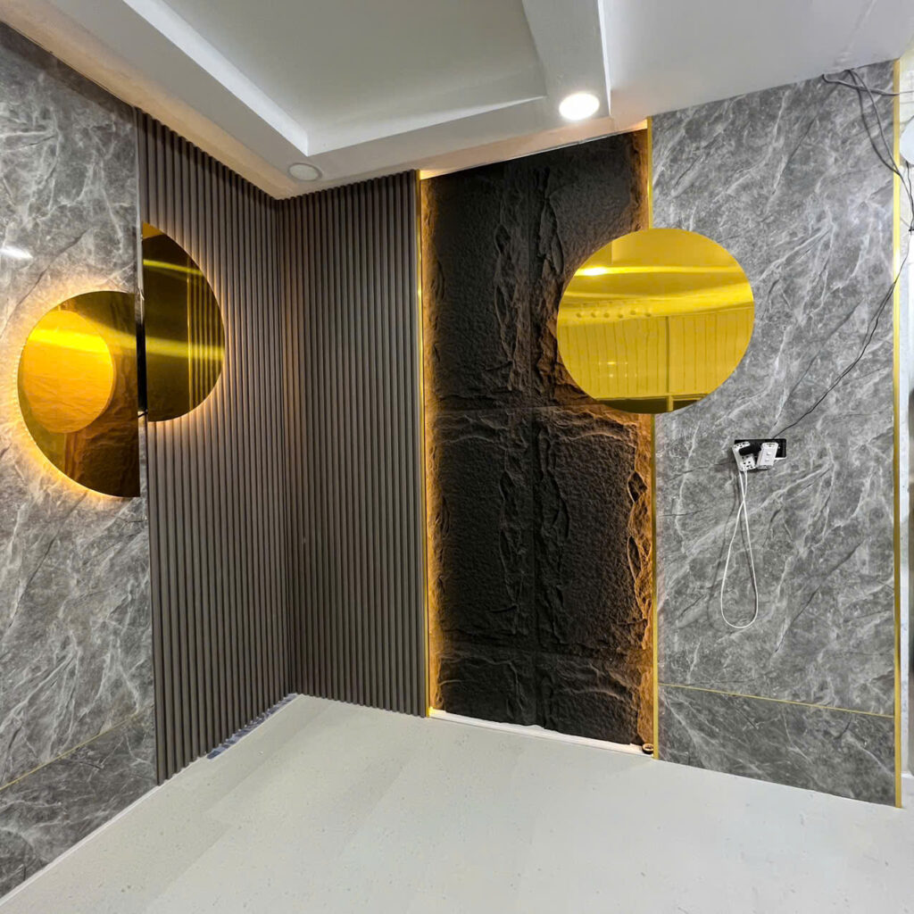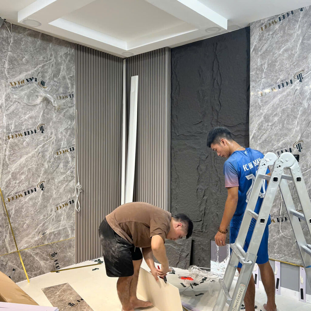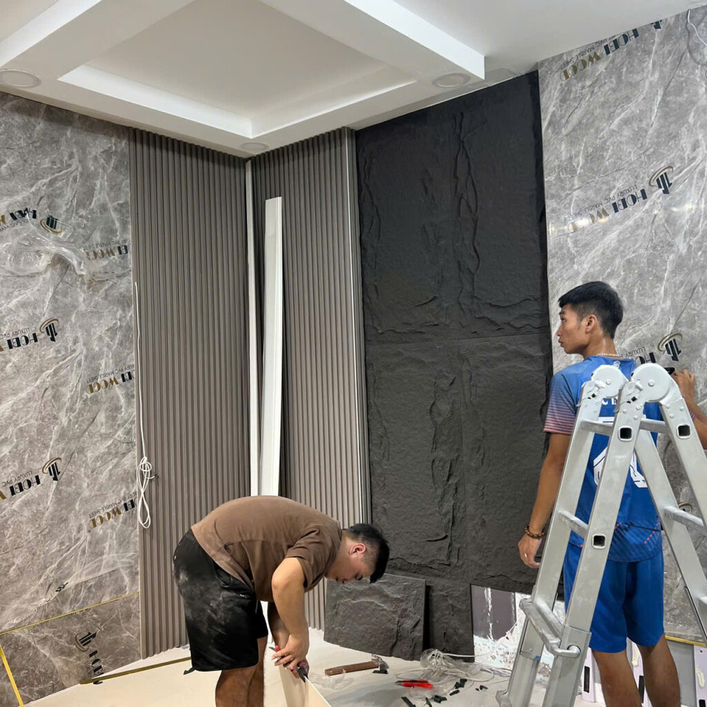 Thi công hoàn thiện gói cơ bản ốp tường pvc vân đá dày 2.6mm  300.000 – 320.000