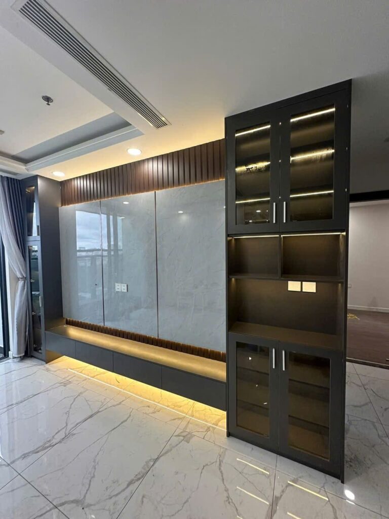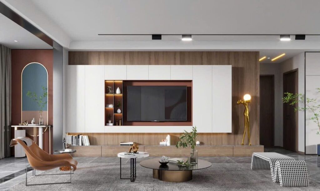 Tăng tính thẩm mỹ: Vách tivi tạo điểm nhấn giúp căn phòng nổi bật và có chiều sâu.